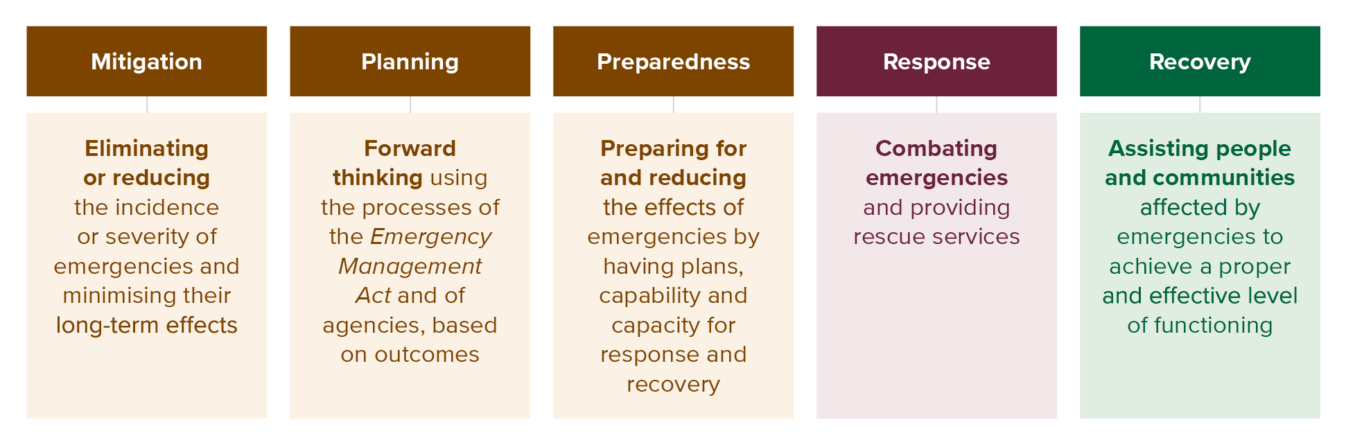 - Victoria’s emergency management system seeks to create safer and more resilient communities by: