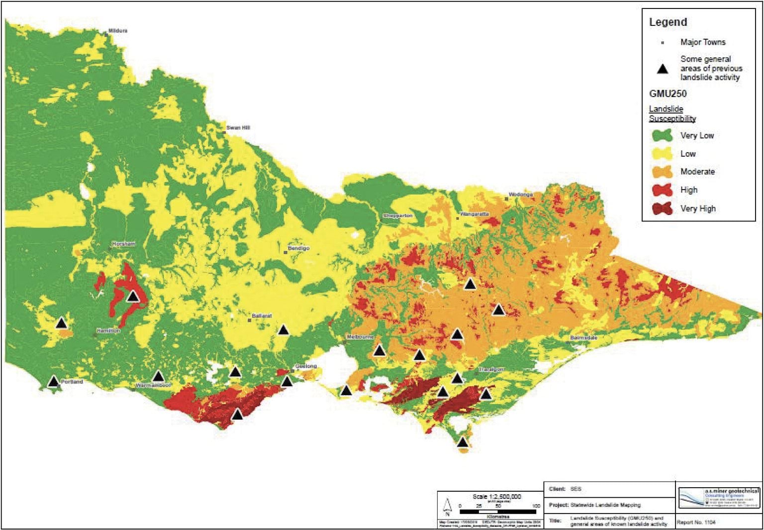 There is no complete statewide mapping of landslide susceptibility available in Victoria.