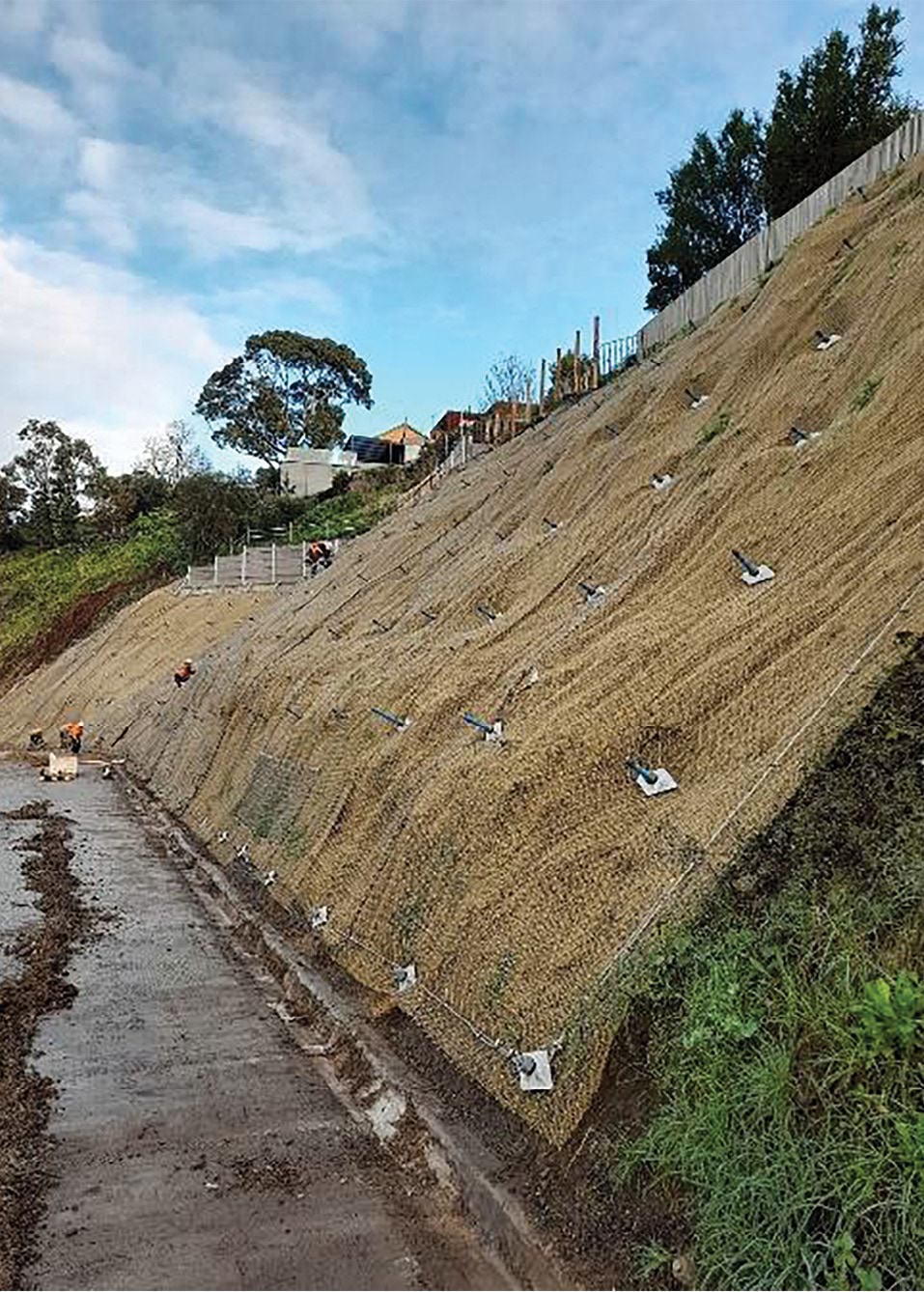 - A photograph of the soil nails and mesh design used on the Hamilton Highway is produced below: