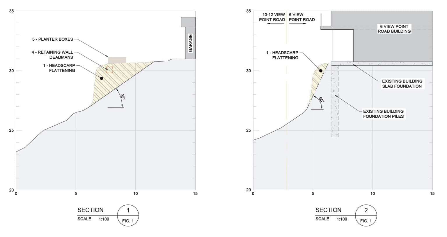- The houses at the top of the slope, 6 and 10 –12 View Point Road, could be re-occupied about seven weeks later once the rockfill has been installed.