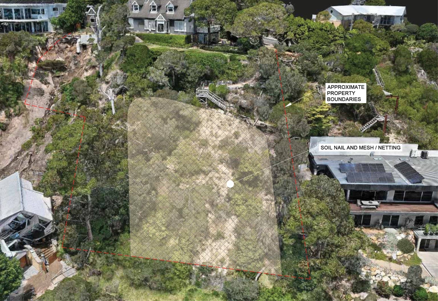 FIGURE 5.7: OBLIQUE VIEW OF SOIL NET DESIGN FOR WEST GULLY OF 10–12 VIEW POINT ROAD.73
