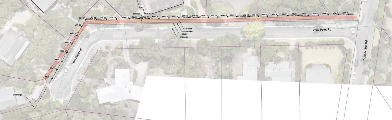 - As shown, the groundwater wells run from the intersection of Prospect Hill Road and View Point Road down the length of View Point Road on the northern side. The design does not provide for permanent pumps, but it does incorporate water monitoring devices and, therefore, power to the area would be required.38