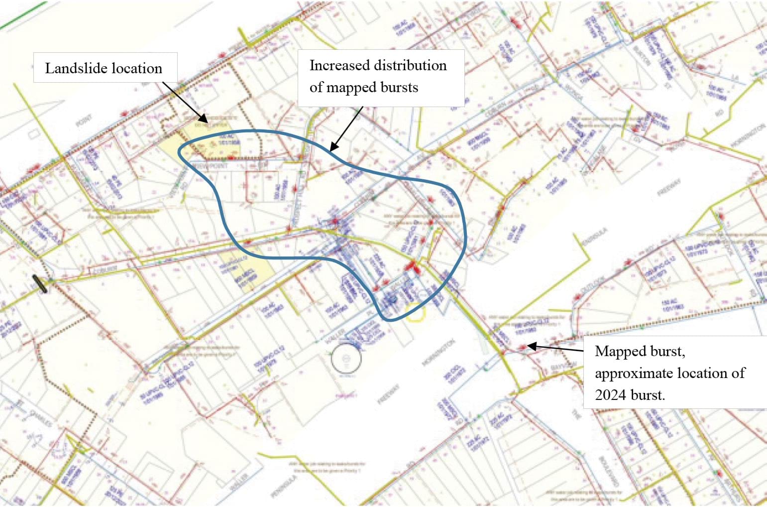 - 102 Submission of Mornington Peninsula Shire Council about mitigation of further landslides, 22 August 2025, [MSC.5094.0001.0050 at .0052]; South East Water, Response to first set of potential adverse findings, 21 August 2025, [SEW.0001.0002.4203 at _0009].